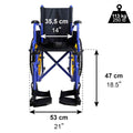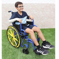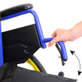 Esta silla de ruedas infantil es segura, duradera y plegable. Adecuada para niños y adolescentes (de 7 a 15 años aprox.) con suficiente independencia para impulsarse. Puede ser utilizada por el niño con sus ruedas traseras grandes o empujada con asas. Cuenta con reposabrazos acolchados, reposapiés de altura ajustable, frenos de seguridad y cinturón de seguridad. Compacta una vez plegada (75 × 88 × 26 cm), fácil de transportar y soporta hasta 113 kg.